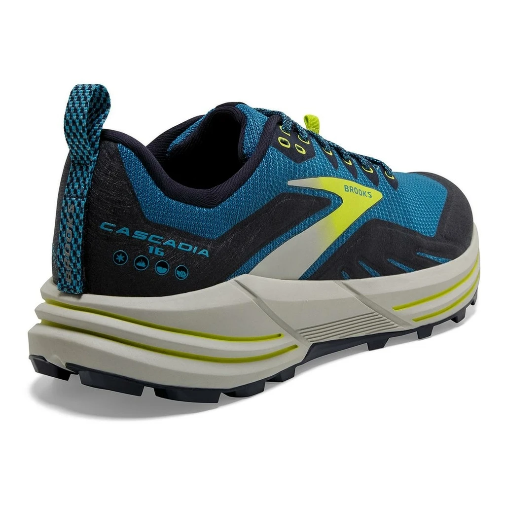 « La stabilité d’un SUV » : voilà la promesse de Brooks avec cette chaussure conçue comme un système de suspension stabilisatrice. La célèbre chaussure de trail Brooks Cascadia est dotée du système Pivot Post qui garantit un contact optimal du pied avec les sols irréguliers, pour maintenir efficace le niveau du pied de l’impact à la prise d’appui. Vous profitez en outre d’une excellente adhérence sur les terrains humides grâce au caoutchouc TrailTrack intégral. Le pied reste droit et la chaussure se conforme à tous les terrains.