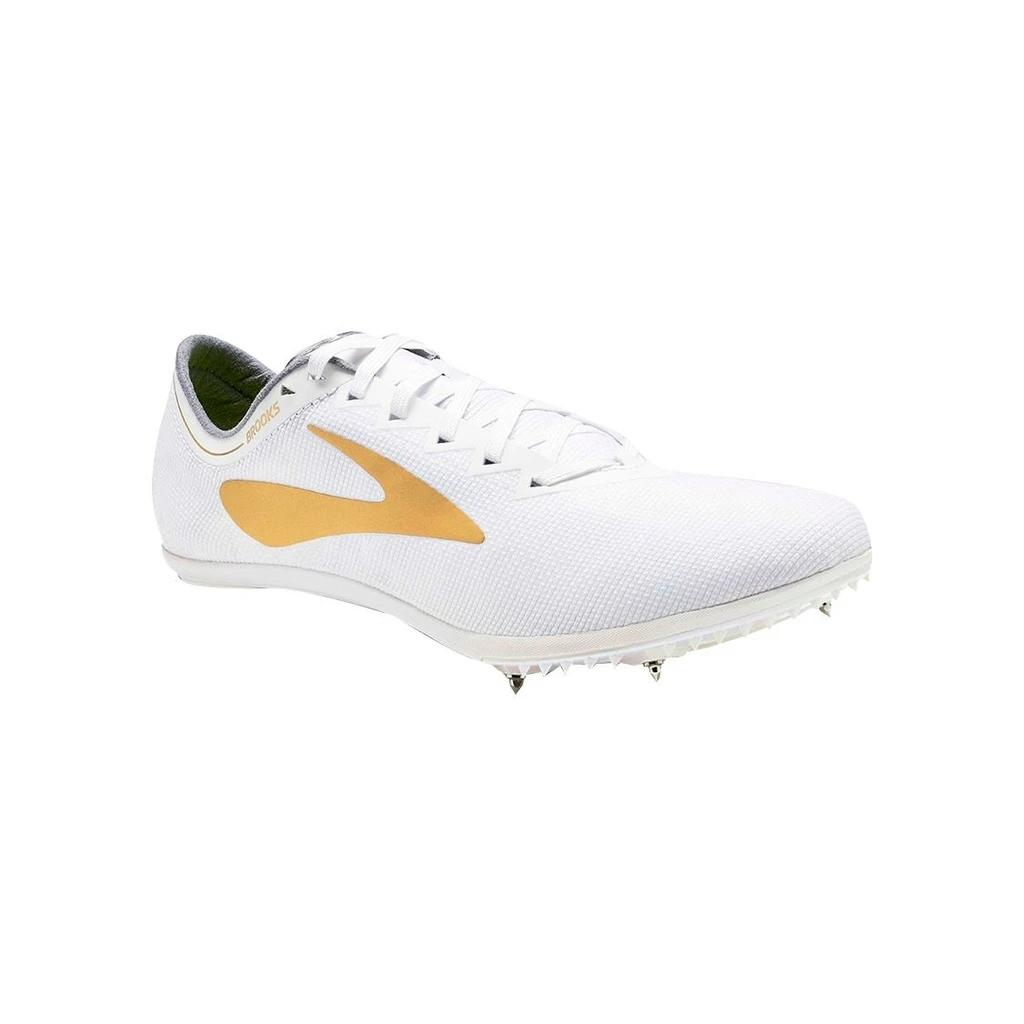 Les pointes d’athlĂ©tisme pour homme BROOKS Wire v5, ici dĂ©clinĂ©es en coloris blanc et jaune, sont idĂ©ales pour les coureurs de demi-fond. Elles conviennent parfaitement pour vos sĂ©ances et compĂ©titions sur piste.