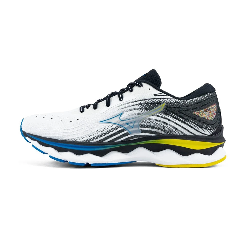 Pour créer la Wave Sky 6, MIZUNO a doté ce modèle du dessus Aerohug. Conçu à partir d’un tissu en mesh stretch, il maintient et enveloppe efficacement le pied pour plus de confort. Quant à la tige, celle-ci a été fabriquée à partir de matériaux recyclés pour apporter souplesse et respirabilité. Elle a été optimisée avec le procédé Dynamotion Fit qui permet à la tige de suivre le mouvement de votre pied pour réduire les tensions subies par la chaussure, tout en empêchant le déplacement de la languette.