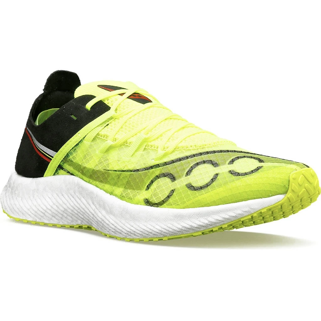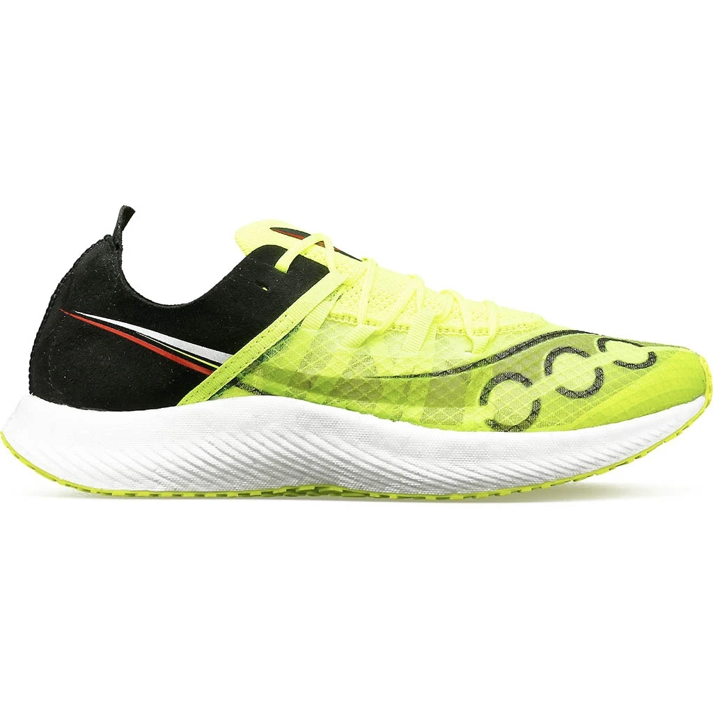 La semelle extérieure en caoutchouc de cette chaussure de running de compétition est dotée d’un motif avec une multitude de petits crampons offrant une adhérence exceptionnelle sur route sèche et sur piste d’athlétisme. Certains coureurs de demi-fond et de fond pourraient même remplacer leurs chaussures à crampons par les Saucony Sinister.